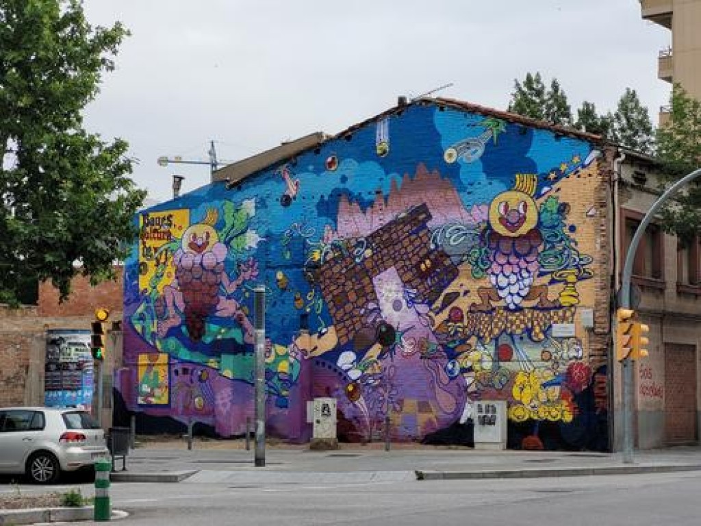 (*) Peu de foto: Pintura mural de l'artista FMF (Ferran Manalbes) a la cruïlla de les avingudes Bases de Manresa i Universitària.