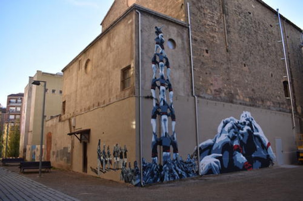 Pinten un mural de grans dimensions per celebrar el 30è aniversari de la colla castellera Tirallongues de Manresa