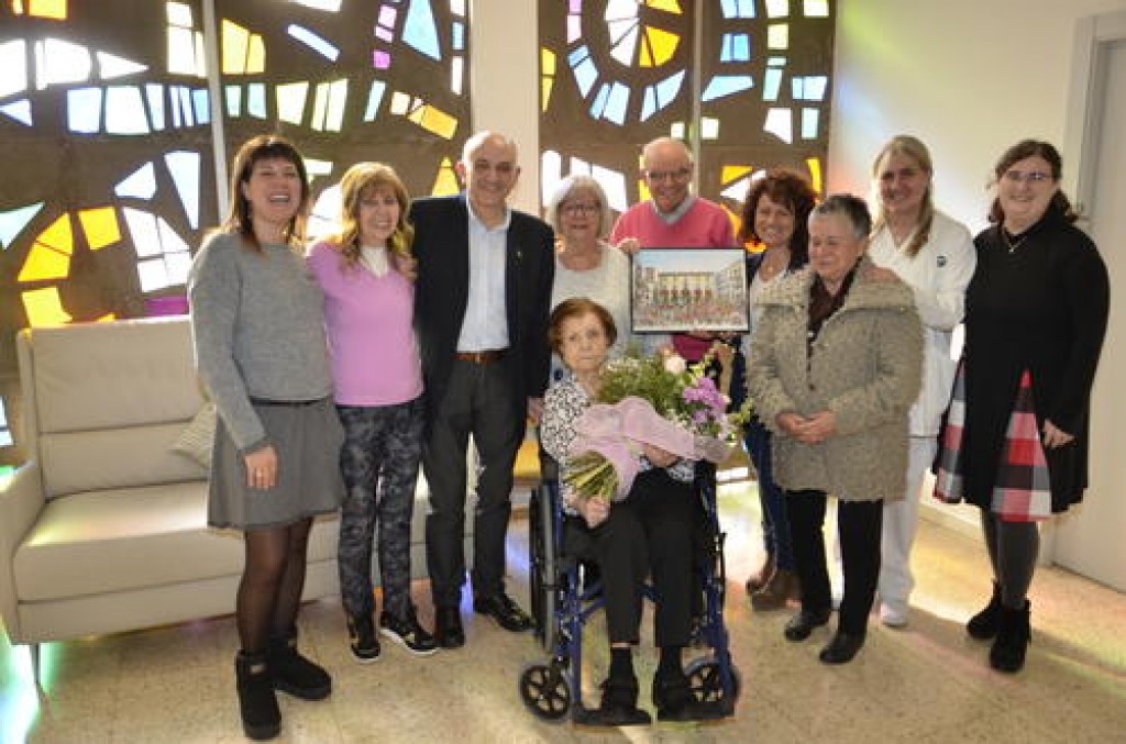 La visita es va celebrar a la Residència Mutuam Manresa, on l’homenatjada va estar acompanyada de familiars i professionals del centre que no es va voler perdre aquesta celebració tan especial.