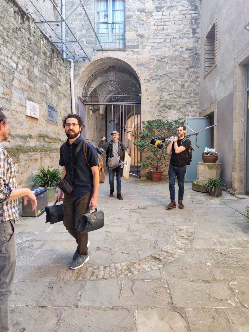 (*) Peu de foto: Membres de l’equip de gravació de la productora nord-americana, a la Seu de Manresa.