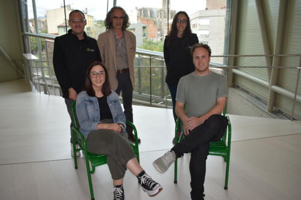 Peu de foto: drets, Francesc Vila Noguera, Director del Museu, entre els mediadors guies del Museu, Ferran Ramírez Jordà i Marta Sánchez Soler, i assentats, la regidora de Cultura i Llengua Tània Infante Martínez i el tècnic de Cultura, Oriol Gasulla Carbonell