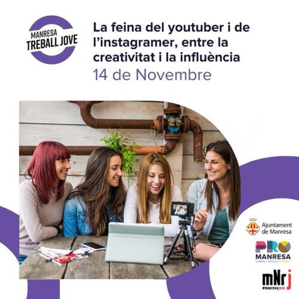 L'Ajuntament de Manresa, través les regidories d’Ocupació i de Joventut, ha organitzat la jornada ‘La feina del youtuber i de l’instagramer, entre la creativitat i la influència’, que se celebrarà el pròxim 14 de novembre de 9.30 a 13.30 h a la sala d’actes del Centre Cultural El Casino.