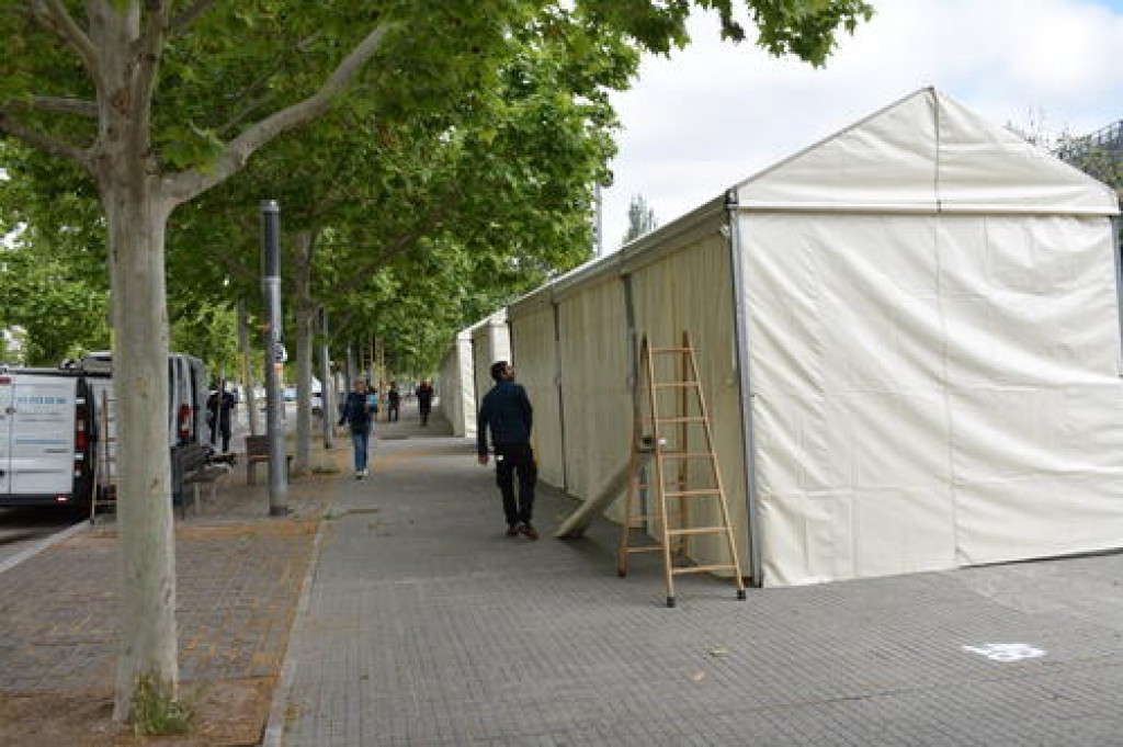 (*) Peu de foto: Aquest matí els operaris ja treballen a l'avinguda Universitària en el muntatge dels estands de la fira