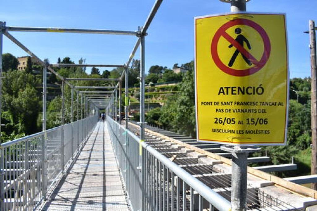 23/05/2025Del 26 de maig al 15 de juny es tancarà el pas de vianants del pont amb motiu dels treballs de formigonatge i d’instal·lació de prelloses.