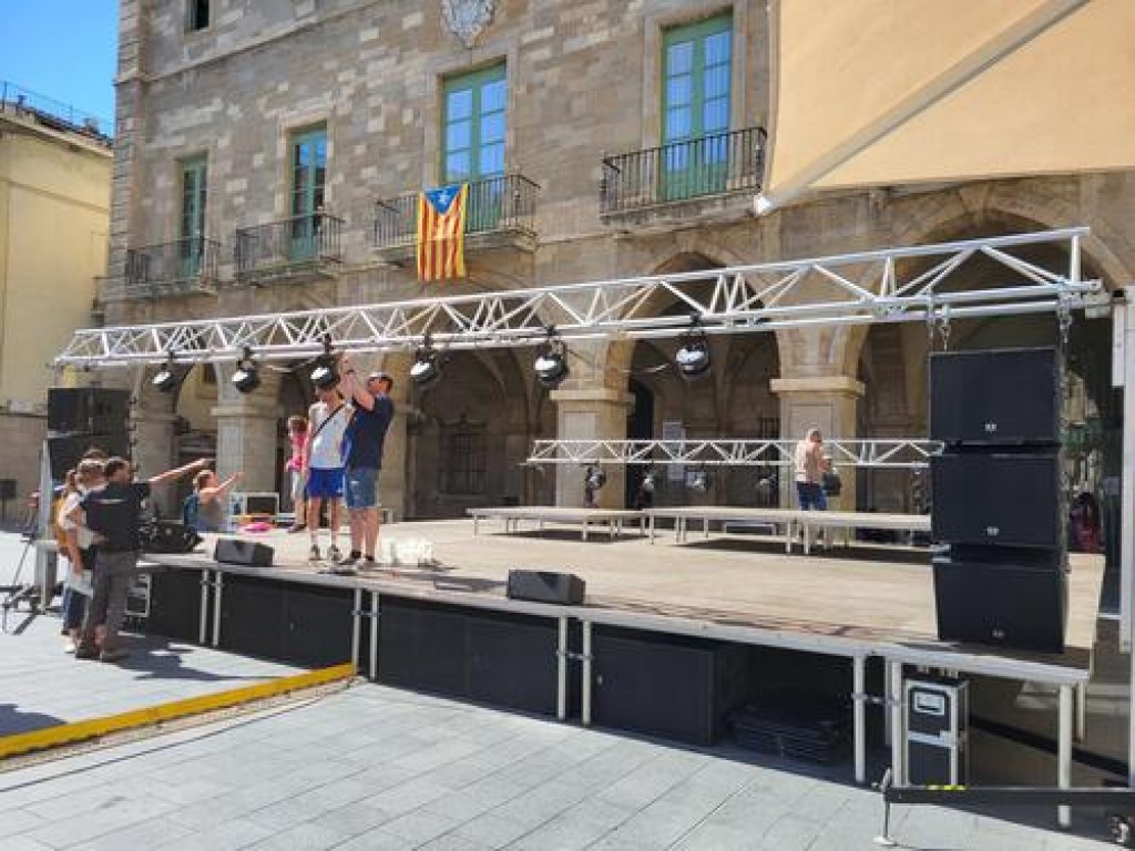 (*) Peu de foto: preparatius a l'escenari de la plaça Major