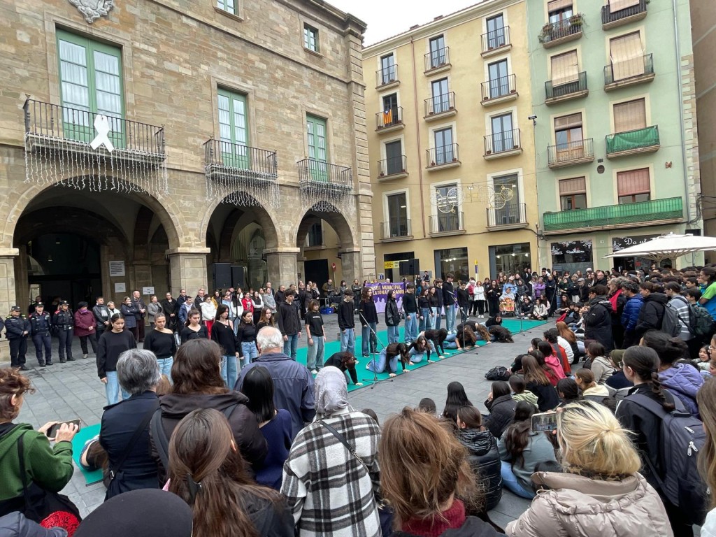 L'acte institucional de rebuig a la violència masclista es farà a les 12 h a la plaça Major. Durant el matí es realitzarà l'acció de sensibilització ‘Visc, visc, visc’, a càrrec de l’alumnat de Teatre Jove de l’Aula d’Arts Escèniques del Kursaal. També es farà l’entrega de premis del tercer concurs de pancartes, on han participat 8 centres de secundària amb la creació de 72 pancartes relacionades amb el 25 N. Es preveu l'assistència d’uns 200 joves de centres educatius de la ciutat i l’acte està obert a tota la ciutadania.