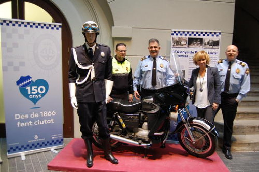 Durant l’acte de presentació, al vestíbul de l’Ajuntament, s’ha instal·lat una petita exposició amb una motocicleta del model Sanglas 400E que va utilitzar la Policia Local des de 1976 fins l’any 1991; i també dos maniquís amb uniformes dels agents locals dels anys 50 i anys 80.