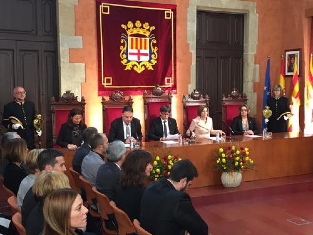 Múltiples detalls, com els domassos als balcons, la catifa vermella a l’escala noble, els representants de la corporació municipal amb la medalla posada i l’assistència d’unes 400 persones, que a banda del l Saló de Sessions, han deixat petits la Sala de Columnes i els porxos, han posat de relleu la solemnitat de l’acte, que ha aplegat una representació institucional inèdita a l’Ajuntament.