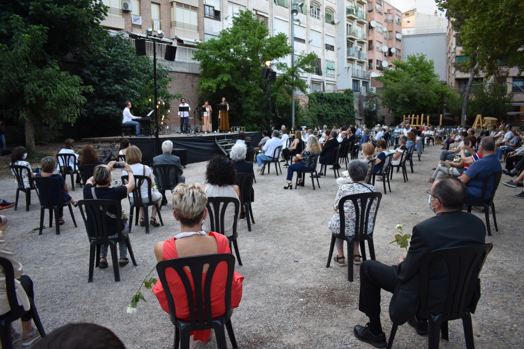La periodista Núria Bacardit ha estat l’encarregada de conduir un acte, que ha arrencat amb la interpretació de la cançó de Lluís Llach ‘Un núvol blanc’, a càrrec de Celeste Alías, Marta Valero i Salva Racero i amb l’acompanyament al piano del músic David Martell, i la lectura dels poemes ‘Recorda’m’, de David Harkins, a càrrec d’Enric Llort –que també ha dirigit l’acte– i ‘Estimar és un lloc’, de Joan Margarit, a càrrec d’Alícia Puertas.