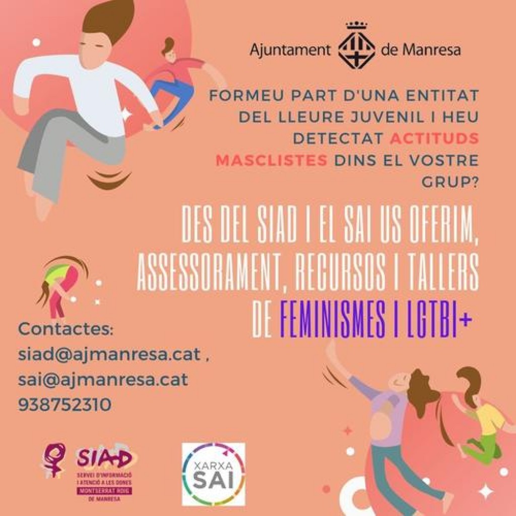 Aquelles entitats i grups de lleure juvenil que detectin alguna situació sexista poden dirigir-se a aquests serveis municipals a través dels correus electrònics siad@ajmanresa.cat i/o sai@ajmanresa.cat o bé trucant al telèfon 938752310.