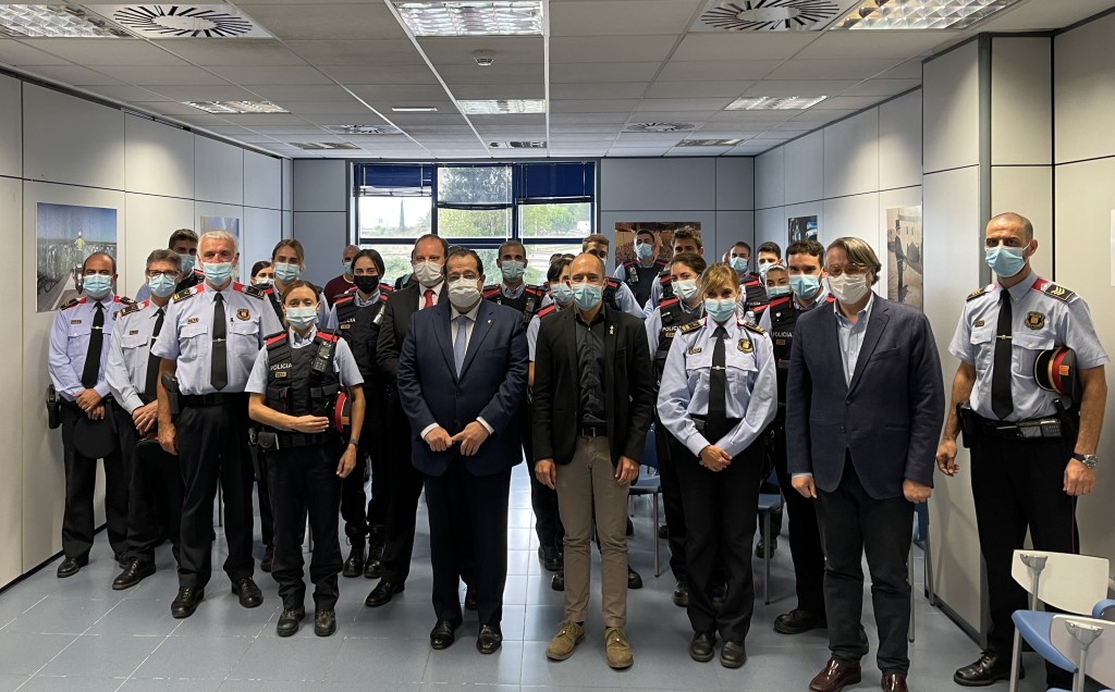 11/10/2021El conseller d’Interior, Joan Ignasi Elena Garcia, ha donat la benvinguda als nous agents del cos policial acompanyat de l’alcalde, Marc Aloy Guàrdia. El conseller ha assegurat que el reforç era molt necessari i ha agraït especialment la tasca que ha fet l’Ajuntament per contenir el dèficit d’agents. L’alcalde ha subratllat la coordinació que s’ha fet entre Mossos i Policia Local per resoldre les problemàtiques que té el territori i ha destacat que els nous agents de Mossos se sumen als 4 agents de Policia Local que s’han incorporat recentment i a les 6 places que s’han convocat.