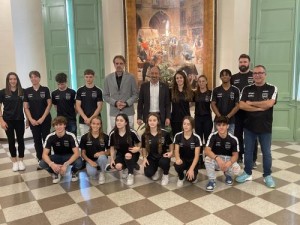 L’alcalde de Manresa, Marc Aloy Guàrdia, i el regidor d’Esports, Anjo Valentí Moll, han rebut aquest migdia a l’Ajuntament una representació del Club Egiba i els ha felicitat pels grans resultats aconseguits aquesta temporada, arrodonits amb el doble campionat estatal per equips de gimnàstica artística femenina i masculina.