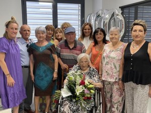 La Residència de Sant Andreu ha acollit aquest matí una petita festa que ha reunit familiars i personal del centre. També hi ha assistit la regidora de Drets Socials i Persones Grans, Mariona Homs Alsina, que li ha lliurat un obsequi i un ram de flors, en nom del consistori.