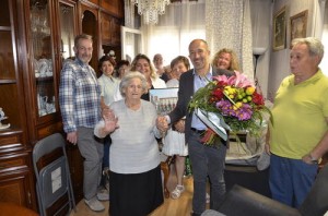 L’alcalde de Manresa, Marc Aloy Guàrdia ha visitat avui Amparo Asensio Salvador per lliurar-li un obsequi i un ram de flors, en nom del consistori, amb motiu del seu 100è aniversari.