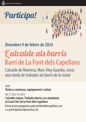 Les visites s’inicien després d’haver finalitzat una primera ronda amb les associacions de veïns i veïnes de la ciutat. La iniciativa, batejada com “L’alcalde als barris”, està contemplada al Pla Director de Participació Ciutadana de l’Ajuntament de Manresa i té l’objectiu d’afavorir el debat directe amb el màxim responsable municipal.