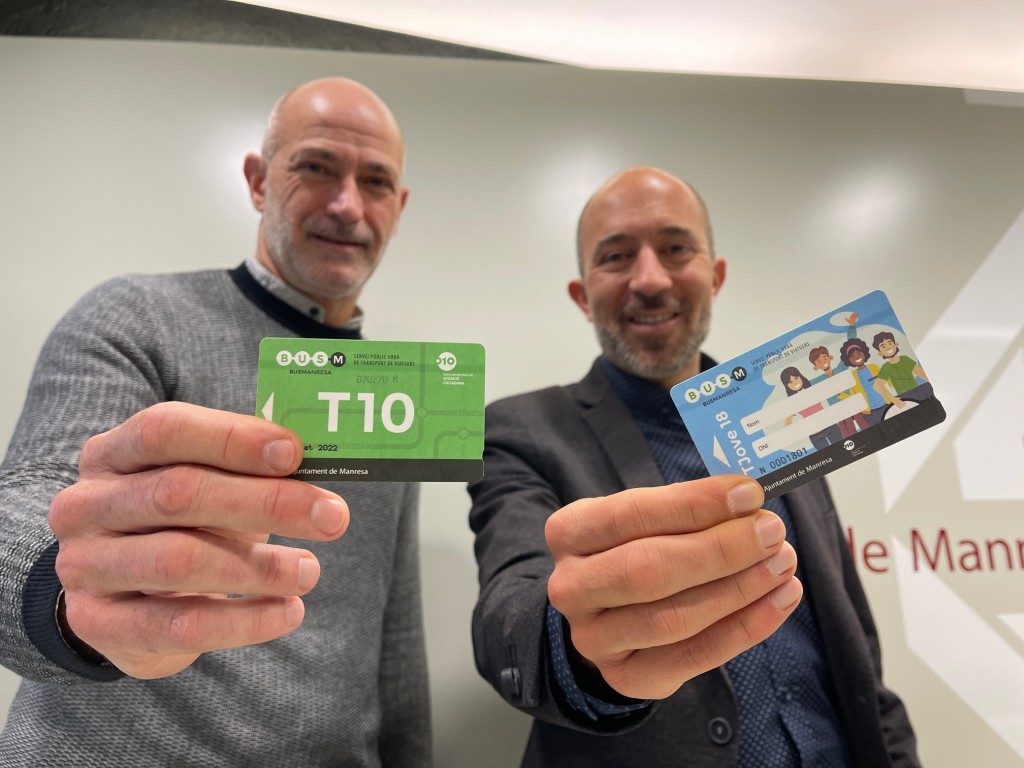 L’Ajuntament de Manresa aplicarà una rebaixa temporal del 50% a les targetes T10 i TMes del bus urbà. Així ho han explicat aquest matí en roda de premsa l’alcalde de Manresa, Marc Aloy Guàrdia, i el regidor d’Urbanisme i Mobilitat, David Aaron López Martí. D’aquesta manera, el cost de la T10 serà de 4,55 euros i el de la TMes serà de 16 euros. La rebaixa es podrà fer efectiva després que el govern espanyol hagi prorrogat els ajuts del 30% que a principis d’agost va anunciar per al transport públic, i que en principi havien d’estar vigents fins a 1 de gener de 2023.