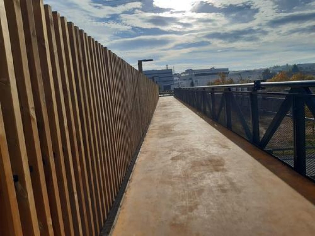 (*) Peu de foto: La nova passarel·la facilita el pas de vianants i ciclistes entre el barri de Cal Gravat i el poligon industrial de Bufalvent