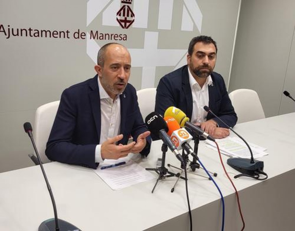 (*) Peu de foto: l'alcalde de Manresa Marc Aloy Guàrdia i el regidor d'Urbanisme i Mobilitat, Carles Garcia Estany han presentat les ajudes
