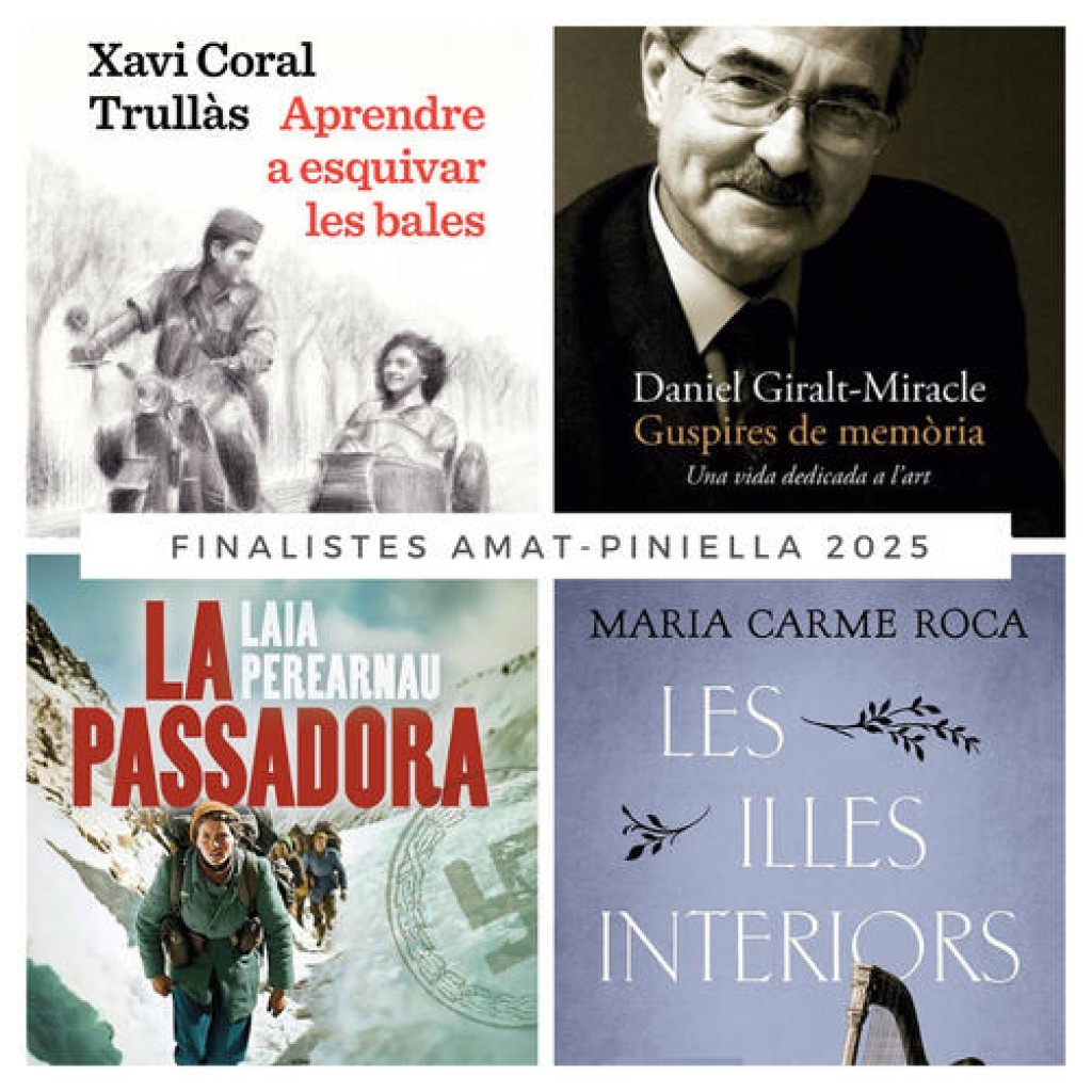 02/12/2024Les obres seleccionades pel jurat en aquesta vint-i-cinquena edició són Aprendre a esquivar les bales, de Xavi Coral; Guspires de memòria, de Daniel Giralt-Miracle; La passadora, de Laia Perearnau; i Les illes interiors, de Maria Carme Roca. La presentació de les obres es farà el 15 de gener de 2025, i l’acte de lliurament tindrà lloc el 18 de febrer, en el marc de la Festa de la Llum.