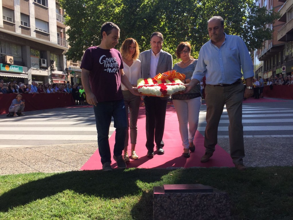 Posterioment ha tingut lloc l’ofrena floral de l’Ajuntament, institucions i de les entitats manresans que s’hi han adherit. Tots s'han anat acostant al centre de la plaça, on hi ha la làpida amb la inscripció "Manresa als lluitadors per les llibertats nacionals de Catalunya".