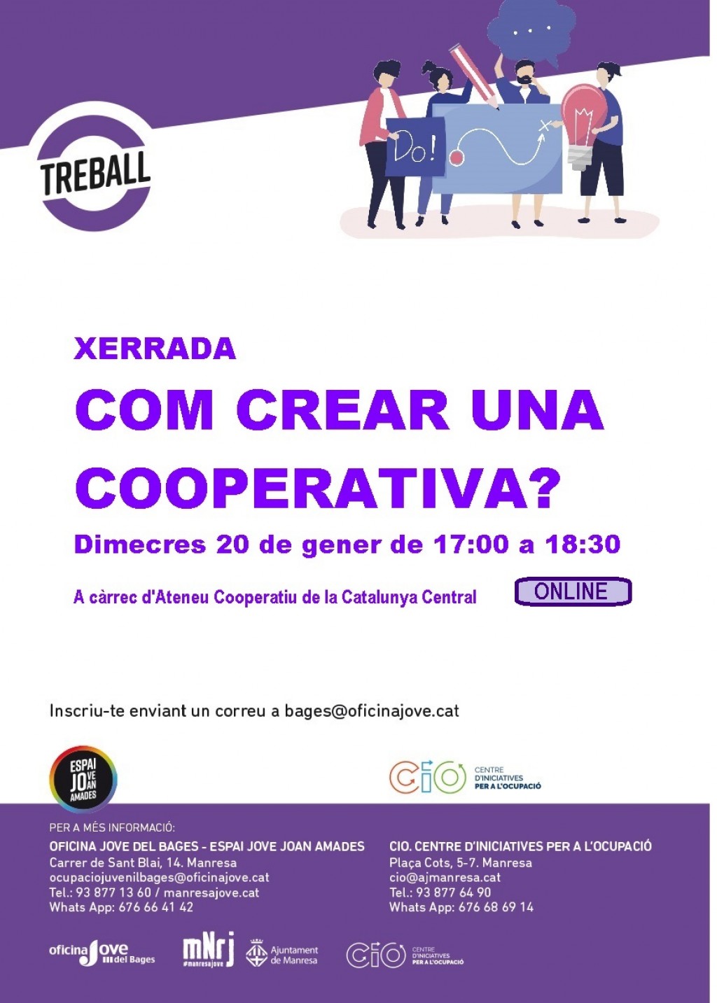Per a més informació també us podeu dirigir al CIO de l’Ajuntament de Manresa (938 776 490) i a l’Oficina Jove del Bages (938 771 360).