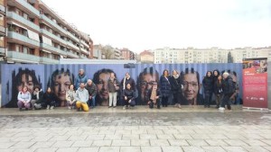 Persones grans i joves presenten el mural del projecte Art K'Suma